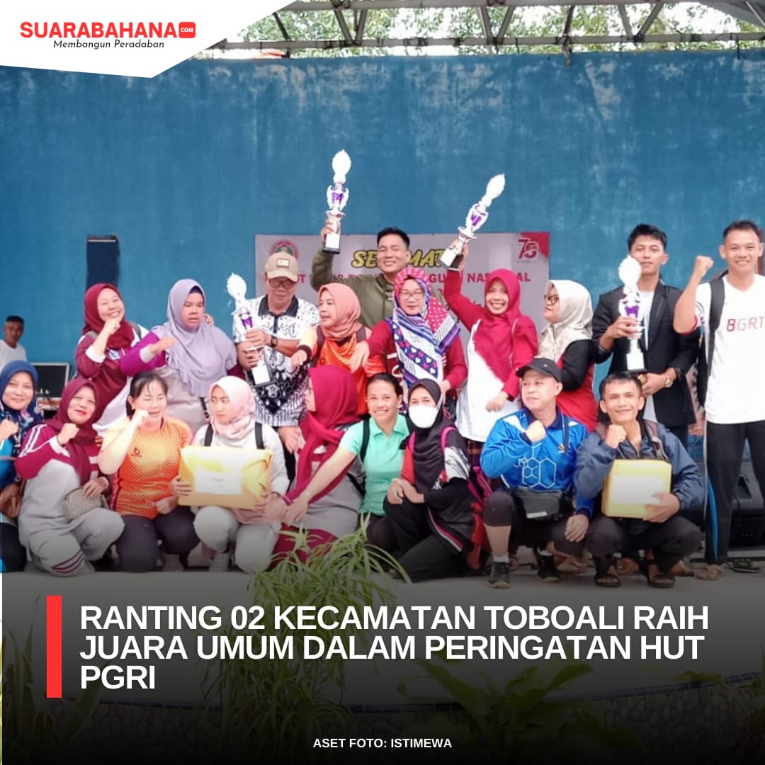 SUARABAHANA.COM — Ranting 02 Kecamatan Toboali meraih prestasi gemilang sebagai juara umum dalam rangkaian lomba meriahkan peringatan Hari Guru Nasional Tahun 2023 dan Hari Ulang Tahun (HUT) ke-78 Persatuan Guru Republik Indonesia (PGRI).