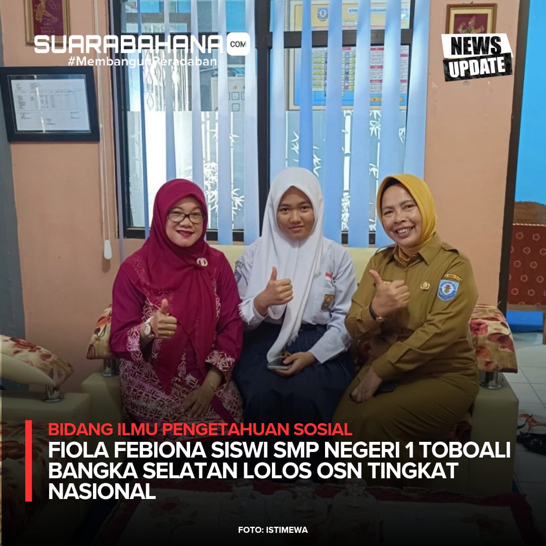 Fiola Febiona pelajar SMP Negeri 1 Toboali Kabupaten Bangka Selatan Provinsi Kepulauan Bangka Belitung akan adu kemampuan akademik dengan peserta dari seluruh Indonesia pada Olimpiade Sains Nasional (OSN) Tingkat Nasional jenjang Sekolah Menengah Pertama (SMP) Tahun 2023.